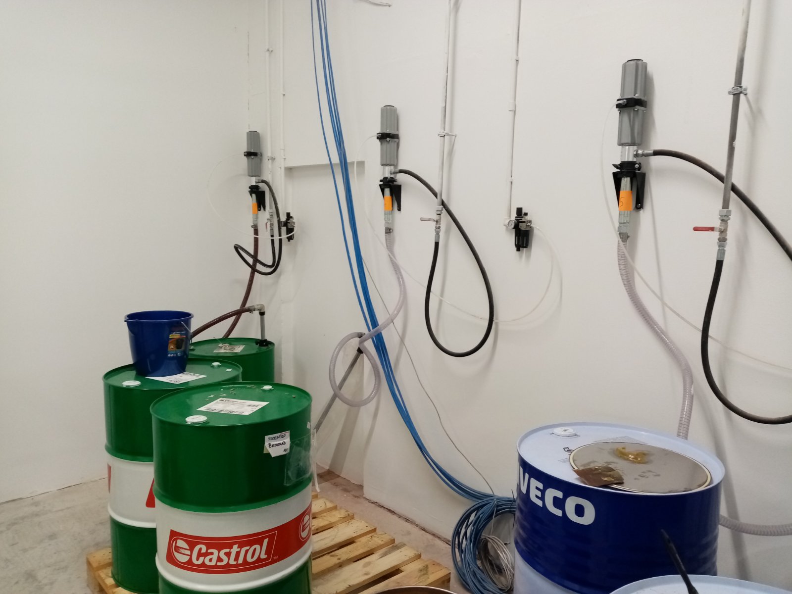 -Kompletna instalacija i razvod sistema za distribuciju fluida za 12 radnih mesta sa digitalnim pištoljima i protokomerima Italijanskog proizvođača FILCAR.