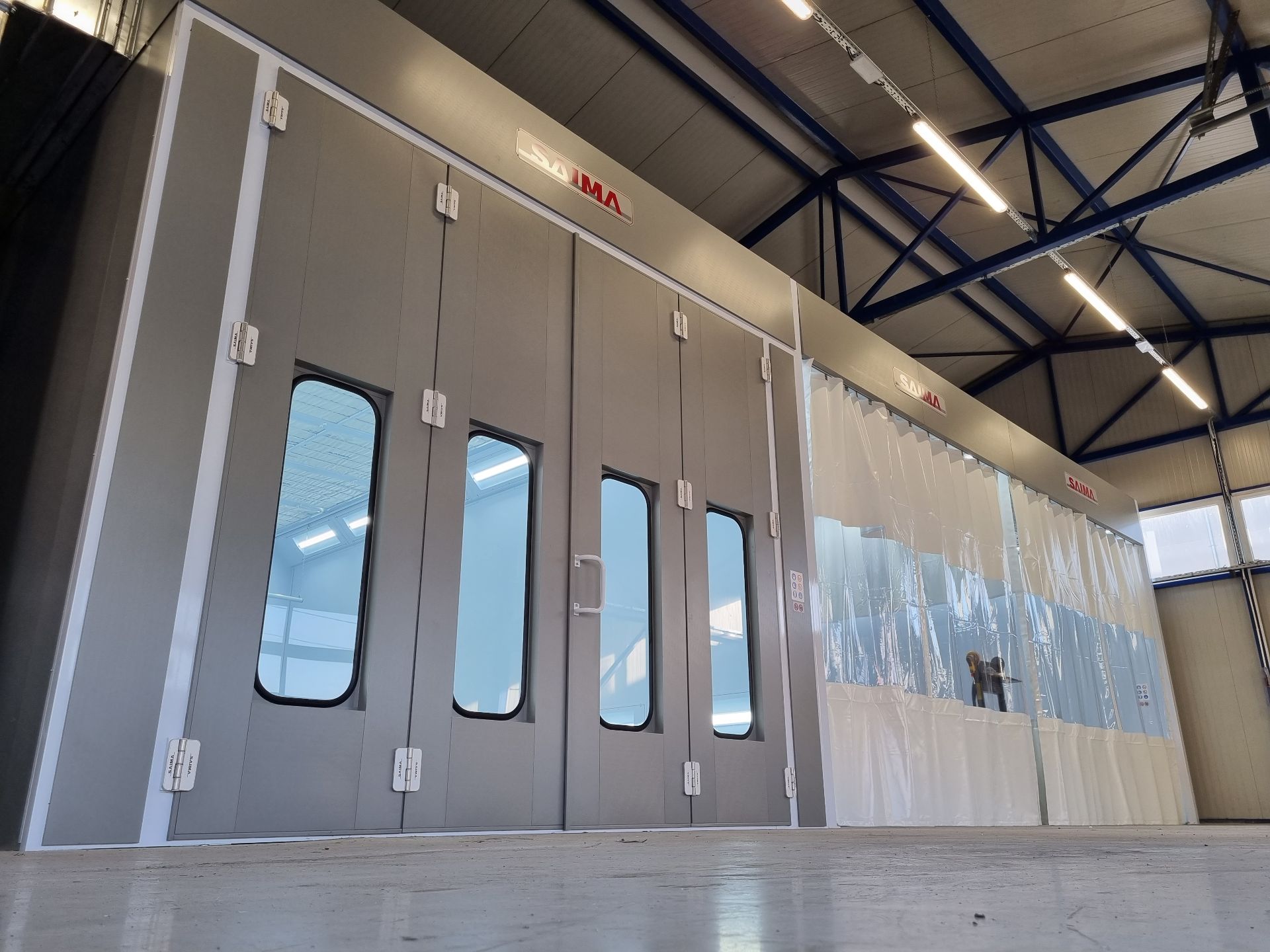 Sa zadovoljstvom možemo da Vam predstavimo prvu komoru BETA-SAIMA MECHANICA koju smo montirali u našoj zemlji. Komora ima dva mesta za pripremu kao i jedno mesto za farbanje, agregatnu grupu i sve prateće elemente specijalno napravljene po projektu za autoservis našeg renomiranog klijenta „AUTOSERVIS V&B”.